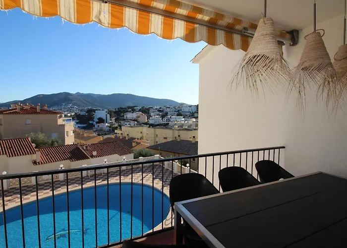 De gesitueerde in Llança Casa Adosada Con Piscina, Cerca De La Playa - 4 Pers. - Es-228-196 Llança heeft gratis priveparkeerplaatsen en een terras met uitzicht op de zee.